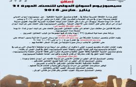 إعلان سيمبوزيوم أسوان الدولي لفن النحت الدورة 21 يناير 2016 :مارس 2016