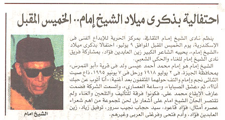 احتفاليى بذكرى ميلاد الشيخ إمام .. الخميس المقبل