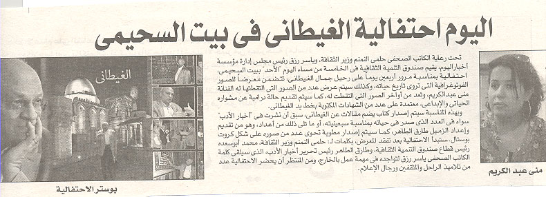 اليوم احتفالية الغيطانى فى بيت السحيمى
