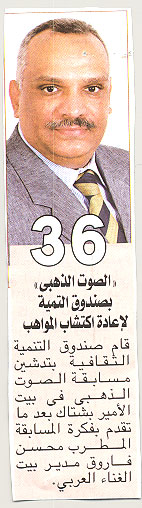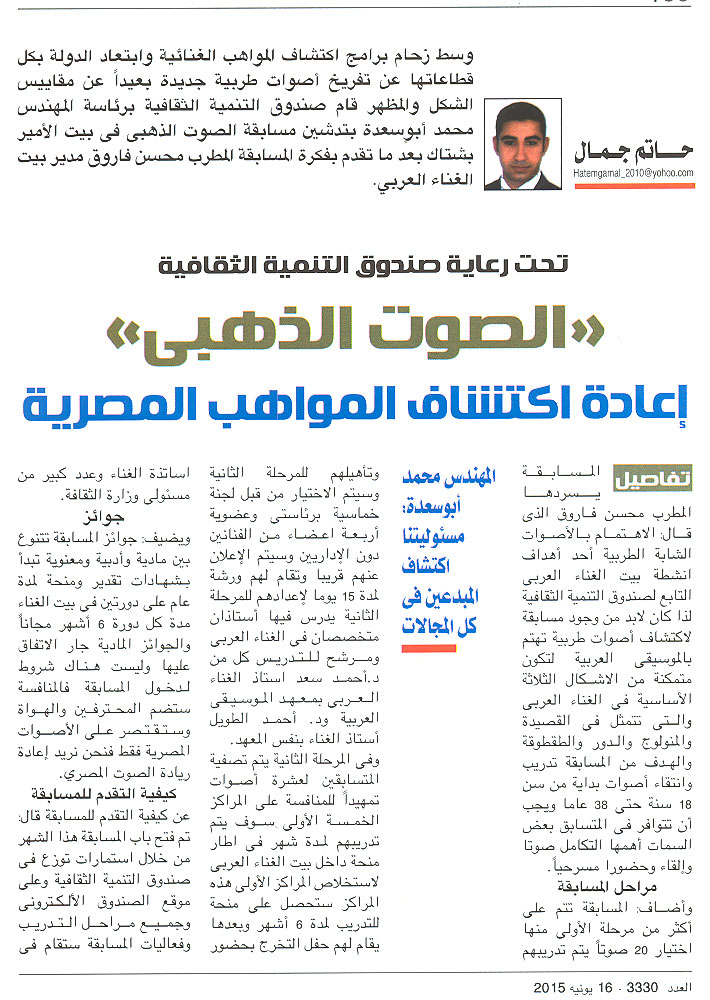 تحت رعاية صندوق التنمية الثقافيىة " الصوت الذهبى" إعادة إكتشاف المواهب المصرية