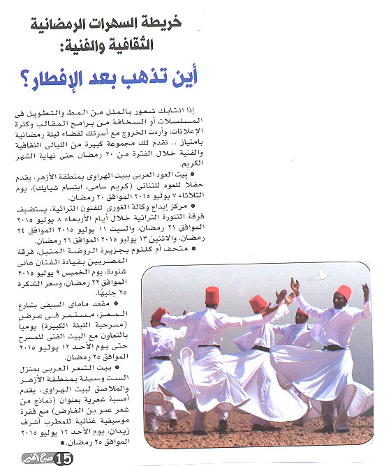 خريطة السهرات الرمضانية والثقافية والفنية ... اين تذهب بعد الإفطار ؟