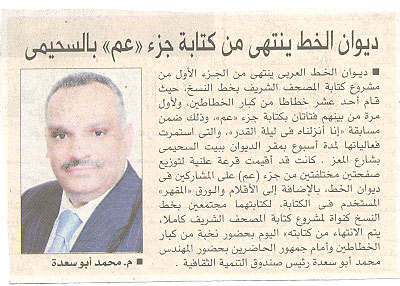 ديوان الخط ينتهى من كتابة جزء " عم " بالسحيمى