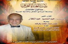 يقيم بيت الغناء العربي (بقصر الأمير بشتاك بشارع المعز) التابع لقطاع صندوق التنمية الثقافية برئاسة دكتورة نيفين الكيلاني في الثامنة من مساء الخميس 15 سبتمبر، صالون مقامات بمشاركة البرنامج الثقافي بالإذاعة المصرية.