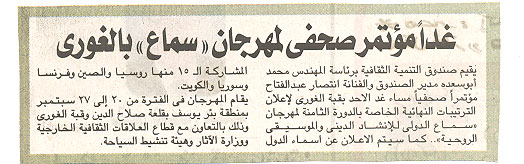 غداً مؤتمر صحفى لمهرجان " سماع " بالغورى