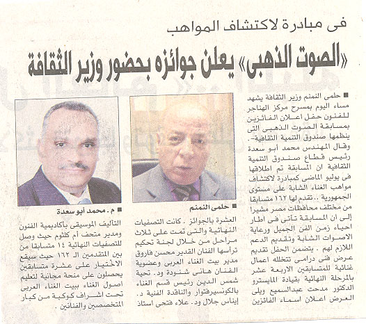 فى مبادرة لأكتشاف المواهب .. " الصوت الذهبى "يعلن جوائزة بحضور وزير الثقافة