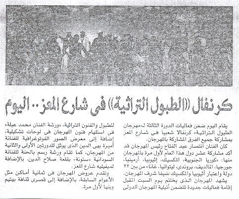 كرنفال "الطبول التراثية" فى شارع المعز... اليوم