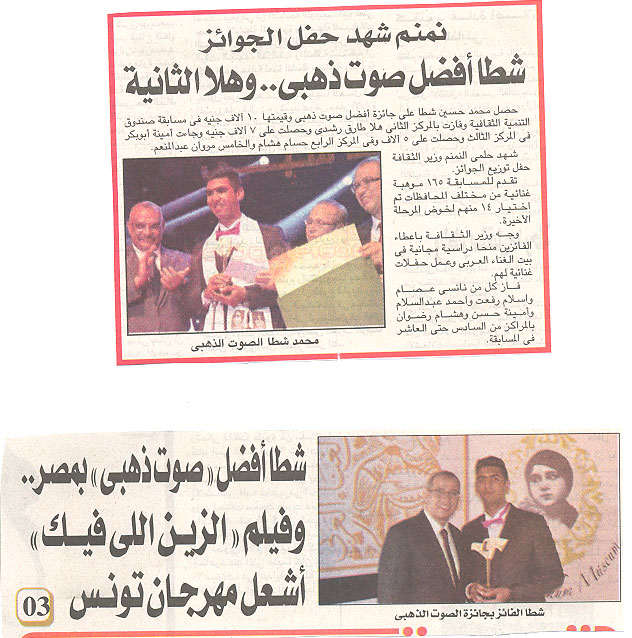 نمنم شهد حفل الجوائز .. شطا أفضل صوت ذهبى .. وهلا الثانية