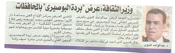 وزير الثقافة : عرض " بردة البوصيرى " بالمحافظات
