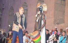 افتتح الكاتب الصحفي حلمي النمنم وزير الثقافة، فعاليات الدورة الخامسة من المهرجان الدولي للطبول والفنون التراثية ، مساء اليوم الخميس بمسرح بئر يوسف بقلعة صلاح الدين الأيوبي، والذي ينظمه قطاع صندوق التنمية الثقافية برئاسة الدكتور أحمد عواض، بالتعاون مع قطاع العلاقات الثقافية الخارجية برئاسة الدكتور ايمن عبد الهادي، والهيئة العامة لقصور الثقافة برئاسة الكاتب صبري سعيد، وعدد من الجهات والهيئات، بحضور الدكتور هشام الشريف وزير التنمية المحلية، والدكتورة نيفين الكيلاني، وعدد من السفراء، وكوكبة من الصحفيين والإعلاميين، وحضور جماهيري كبير