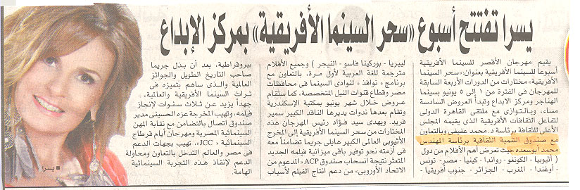 يسرا تفتتح أسبوع " سحر السينما الأفريقية " بمركز الإبداع