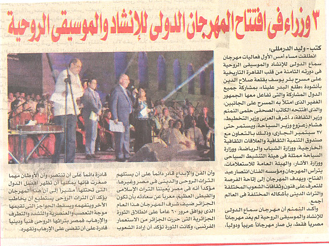 3 وزراء فى افتتاح المهرجان الدولىللإنشادوالموسيقى الروحية
